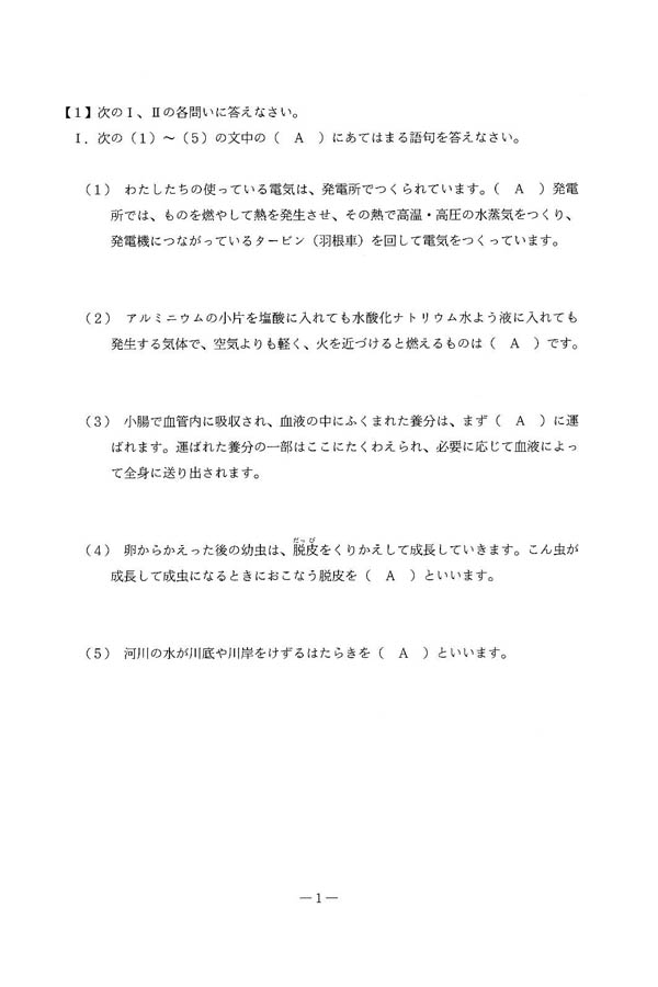平成25年度入試過去問題 第1回(理科 問題)(1ページ目)|国学院大学久我山中学校の入試過去問