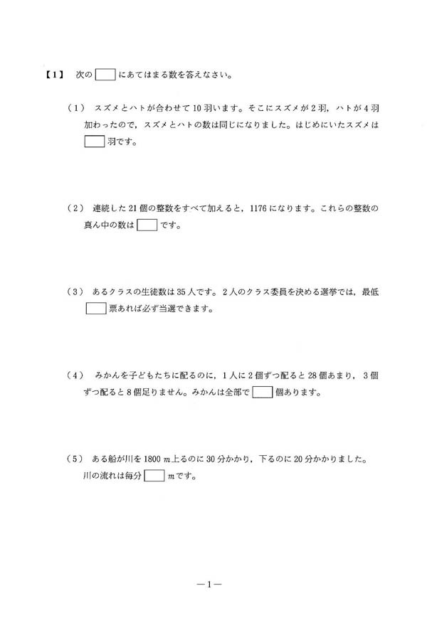 平成25年度入試過去問題 ST第1回(算数 問題)(1ページ目)|国学院大学久我山中学校の入試過去問