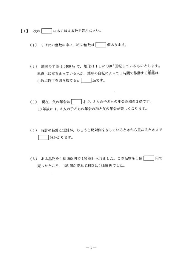 入試過去問(問題)(1ページ目)|国学院大学久我山中学校の入試過去問