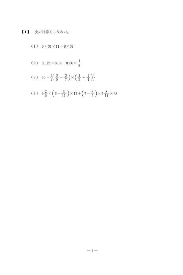 平成28年度入試過去問題 第2回(算数 問題)(1ページ目)|国学院大学久我山中学校の入試過去問
