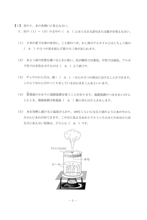 平成28年度入試過去問題 第2回(理科 問題)(1ページ目)|国学院大学久我山中学校の入試過去問