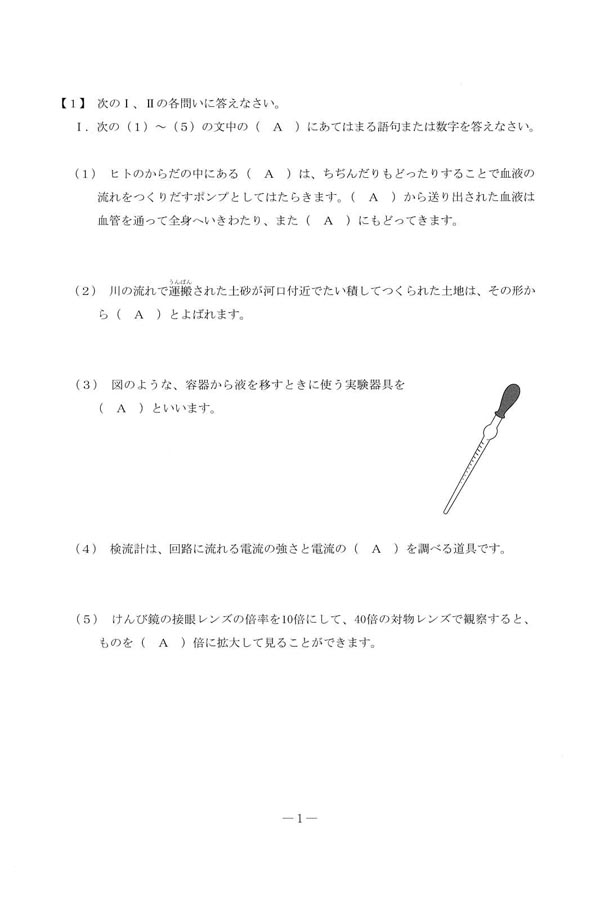 平成28年度入試過去問題 第3回(理科 問題)(1ページ目)|国学院大学久我山中学校の入試過去問