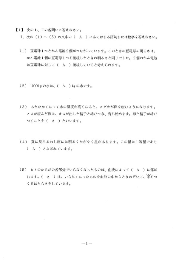 入試過去問(問題)(1ページ目)|国学院大学久我山中学校の入試過去問