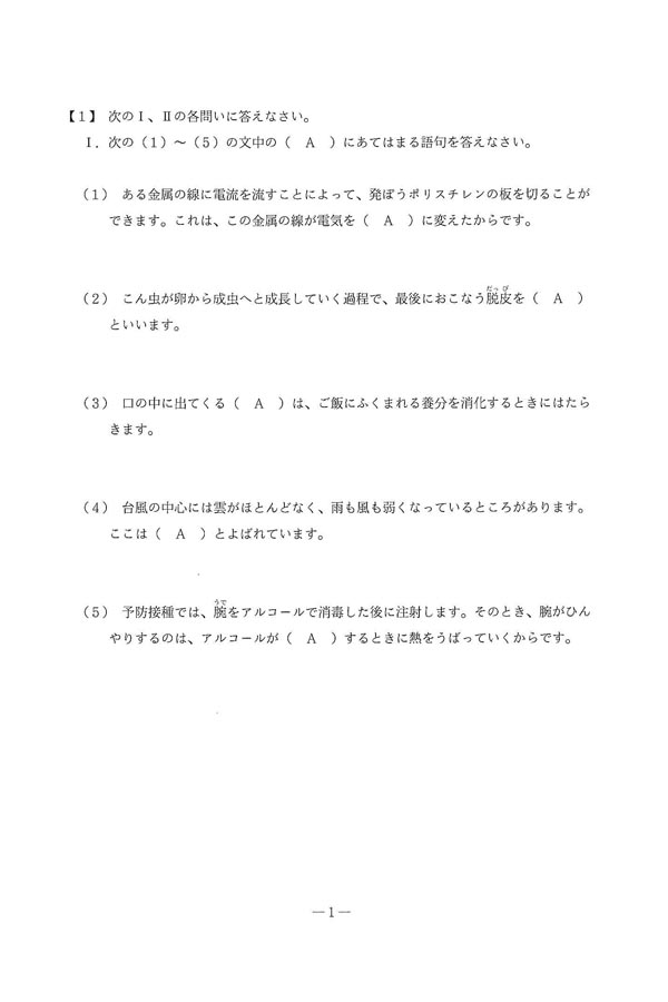 入試過去問(問題)(1ページ目)|国学院大学久我山中学校の入試過去問