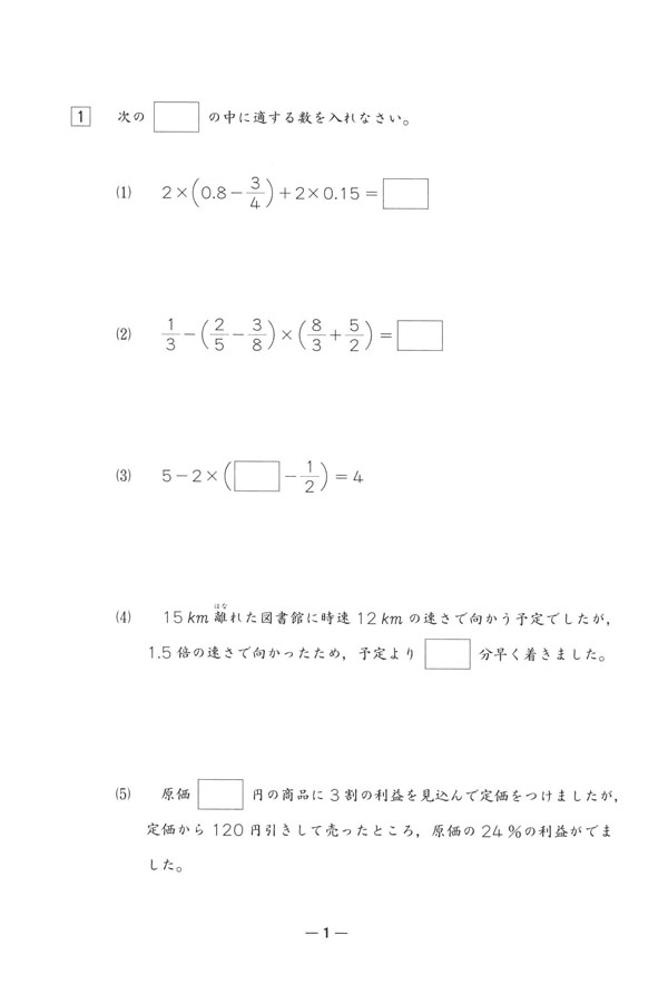 令和7年度入試過去問題 第1回(算数 問題)(1ページ目)|日本大学第二中学校の入試過去問