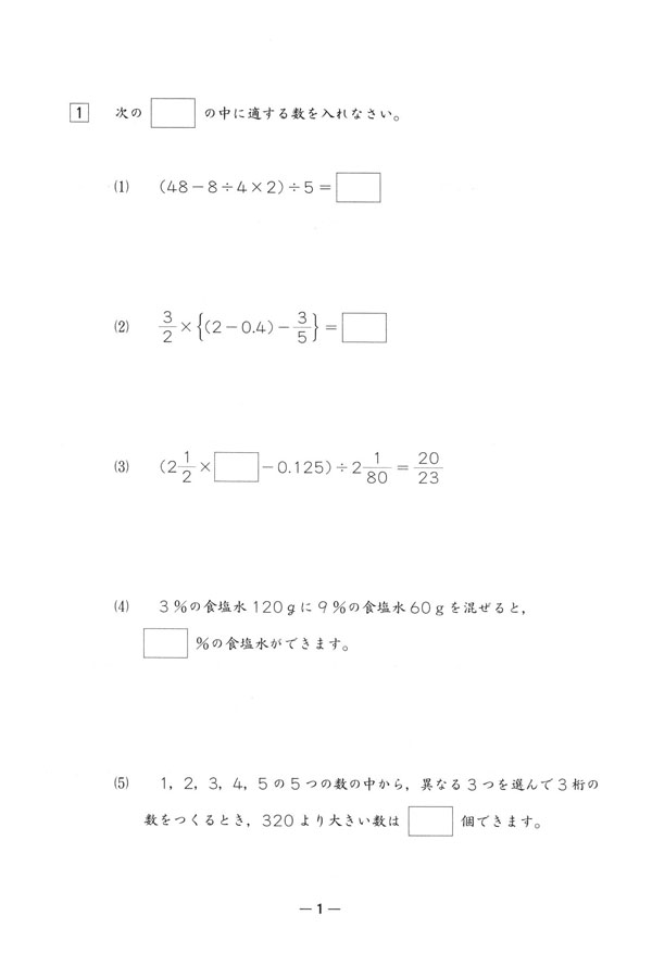 令和7年度入試過去問題 第2回(算数 問題)(1ページ目)|日本大学第二中学校の入試過去問
