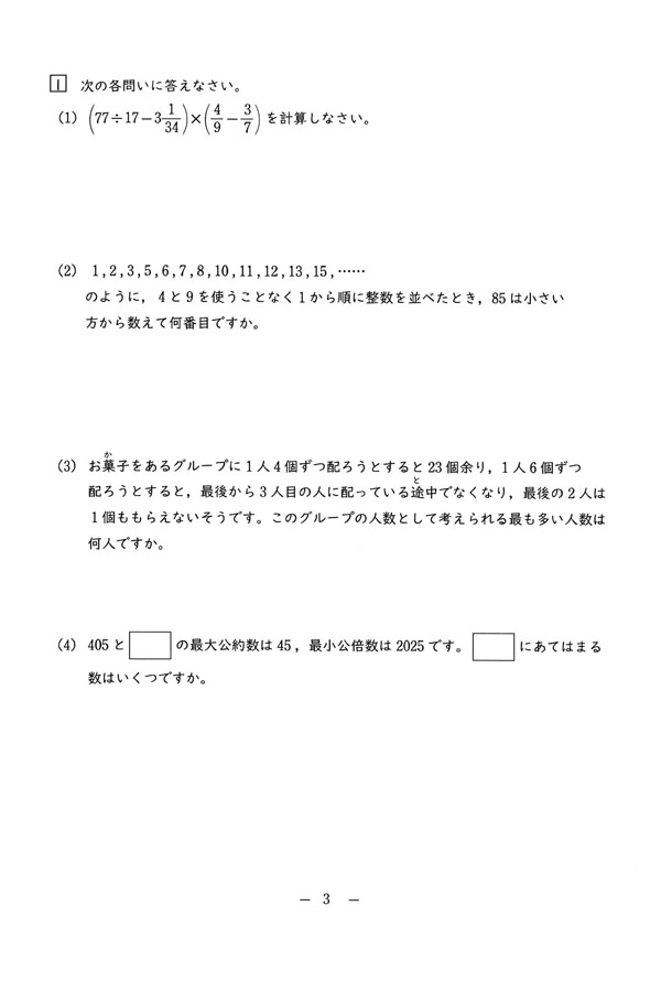 2025年度入試過去問題  第1回(算数 問題)(1ページ目)|豊島岡女子学園中学校の入試過去問