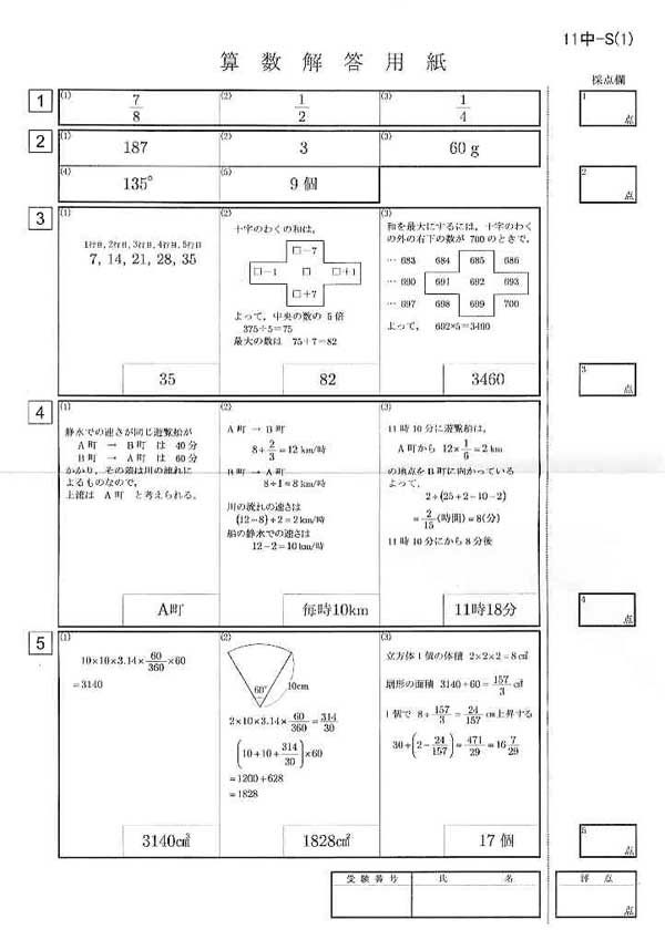 平成23年度入試過去問題(算数 解答)(1ページ目)|東京電機大学中学校の入試過去問