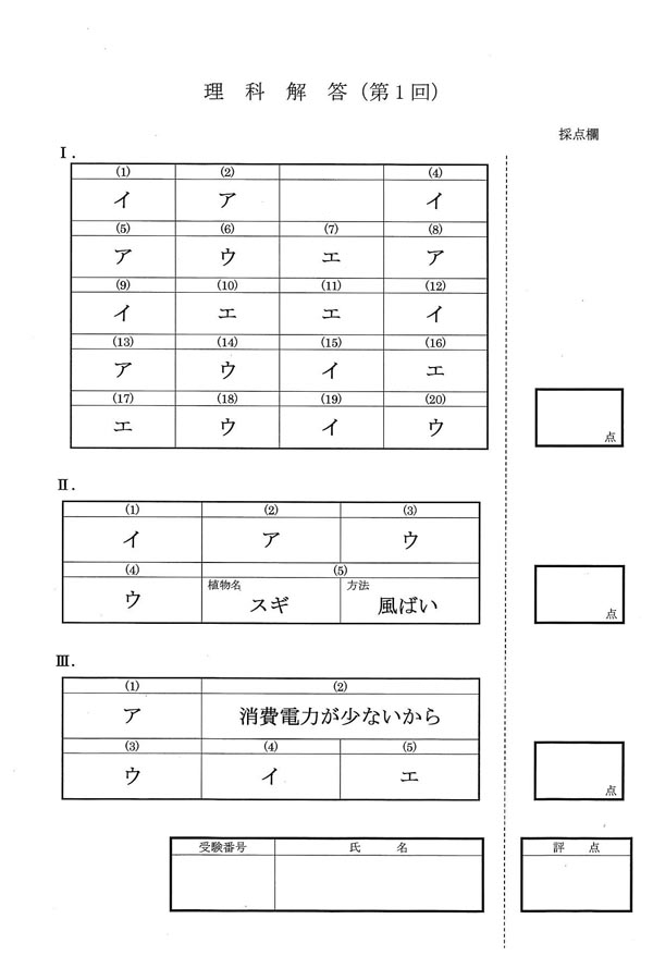 平成30年度入試過去問題(理科 解答)(1ページ目)|東京電機大学中学校の入試過去問