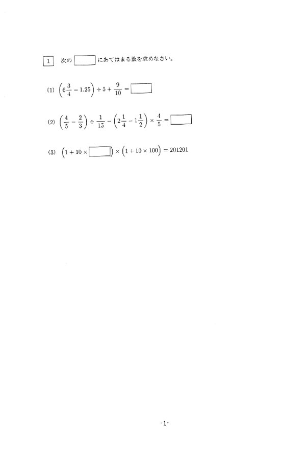 平成24年度入試過去問題(算数 問題)(1ページ目)|東京電機大学中学校の入試過去問