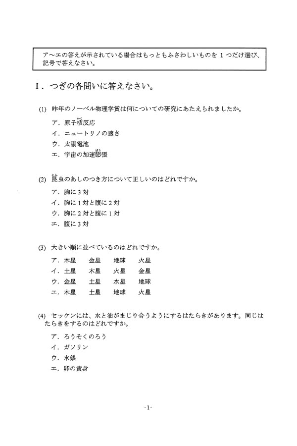 入試過去問(問題)(1ページ目)|東京電機大学中学校の入試過去問