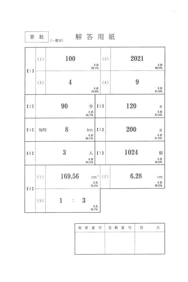 2021年度入試過去問題  一期B(算数 解答)(1ページ目)|関東学院中学校の入試過去問