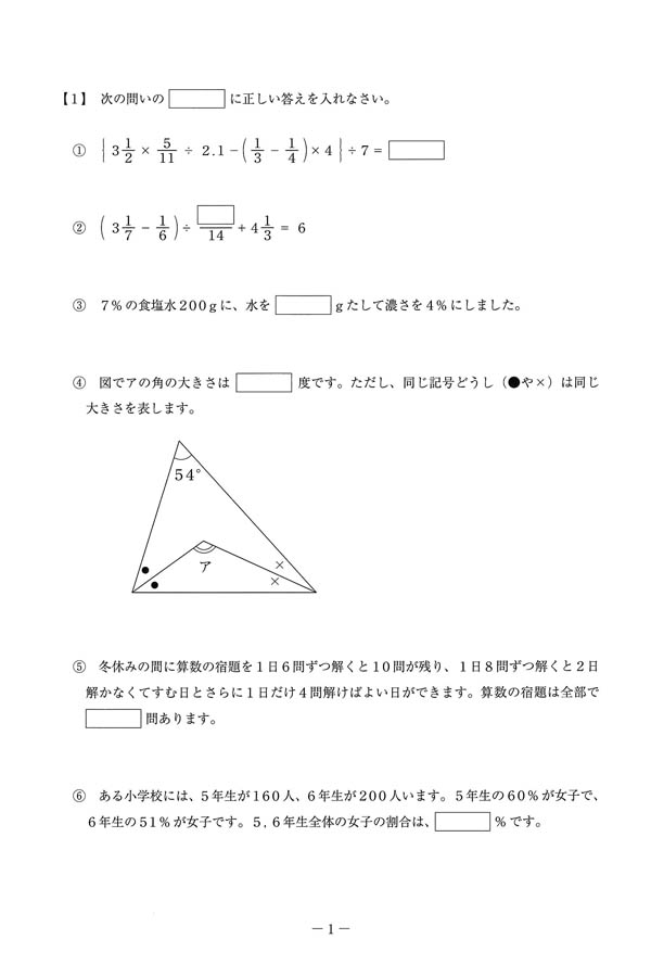 2024年度入試過去問題  第1回(算数 問題)(1ページ目)|カリタス女子中学校の入試過去問