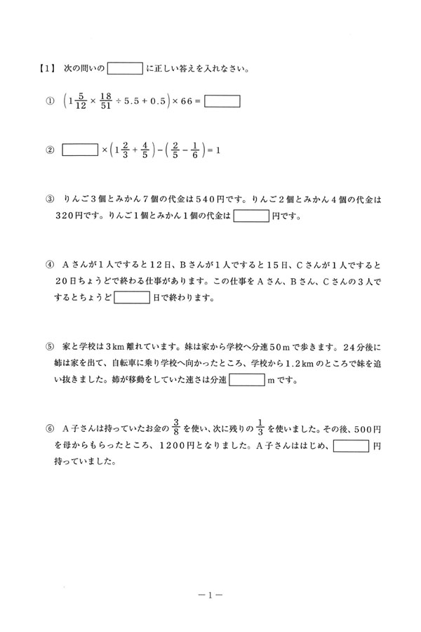 2025年度入試過去問題  第2回[1/6]
