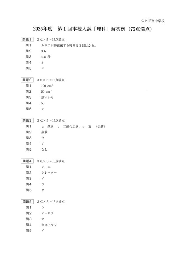 入試過去問(解答)(1ページ目)|佐久長聖中学校の入試過去問