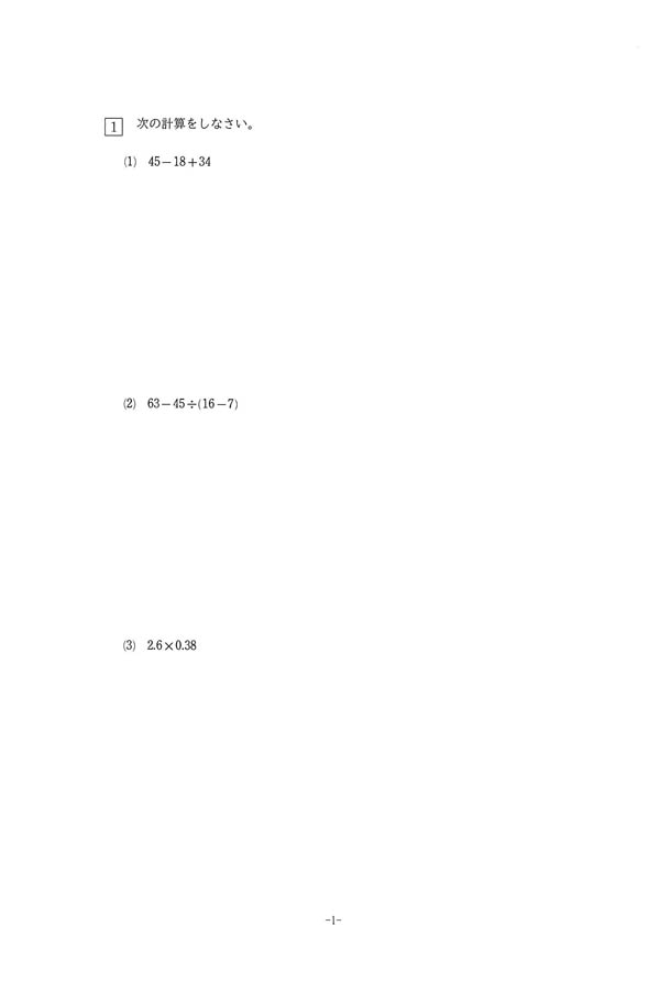 令和5年度入試過去問題 2期(算数 問題)(1ページ目)|麗澤瑞浪中学校の入試過去問