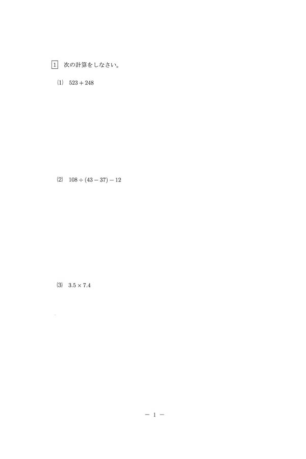 令和6年度入試過去問題 1期(算数 問題)(1ページ目)|麗澤瑞浪中学校の入試過去問