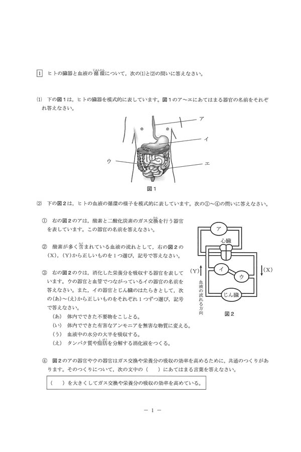 令和6年度入試過去問題 1期(理科 問題)(1ページ目)|麗澤瑞浪中学校の入試過去問