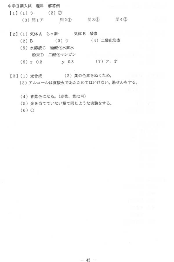 平成22年度入試過去問題 II期入試(理科 解答)(1ページ目)|静岡聖光学院中学校の入試過去問