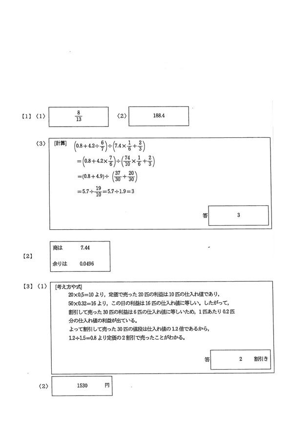 令和6年度入試過去問題 一般東京・1科目静岡・特待生(算数 解答)(1ページ目)|静岡聖光学院中学校の入試過去問
