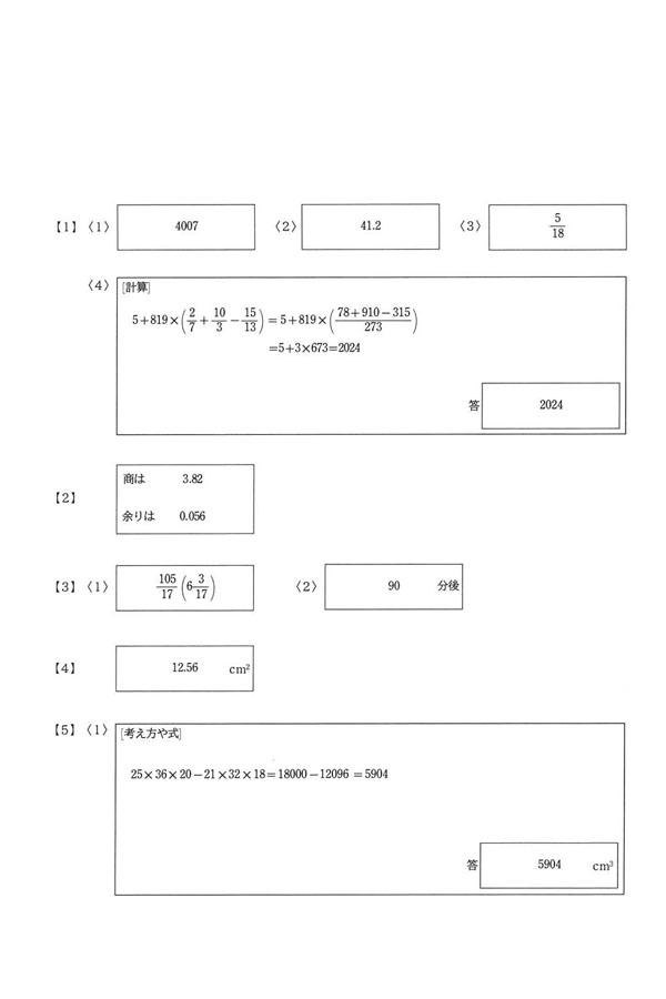 令和6年度入試過去問題 II 期(算数 解答)(1ページ目)|静岡聖光学院中学校の入試過去問
