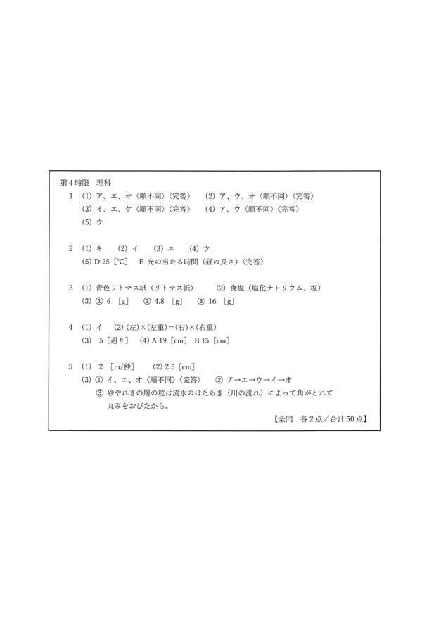 令和6年度入試過去問題(理科 解答)(1ページ目)|名古屋経済大学高蔵中学校の入試過去問