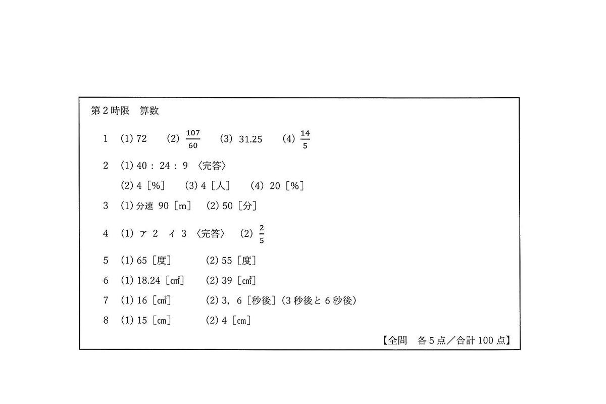 令和7年度入試過去問題(A日程)(算数 解答)(1ページ目)|名古屋経済大学高蔵中学校の入試過去問
