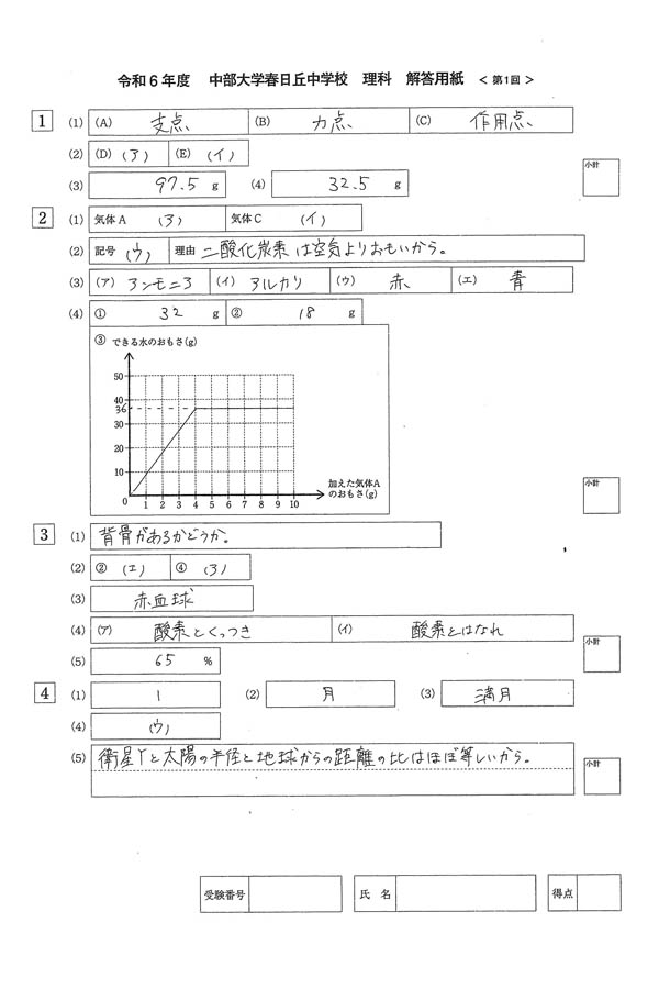 入試過去問(解答)(1ページ目)|中部大学春日丘中学校の入試過去問