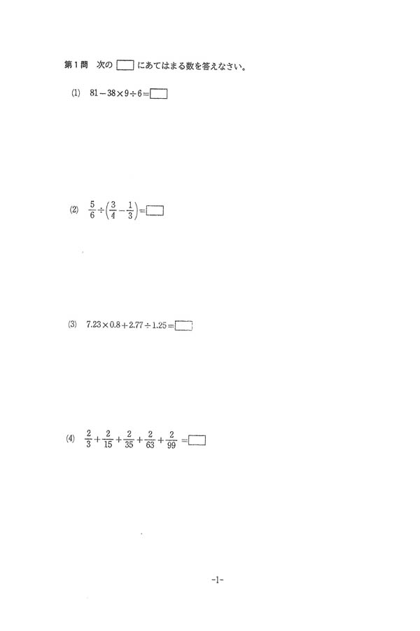 入試過去問(問題)(1ページ目)|津田学園中学校・高等学校の入試過去問