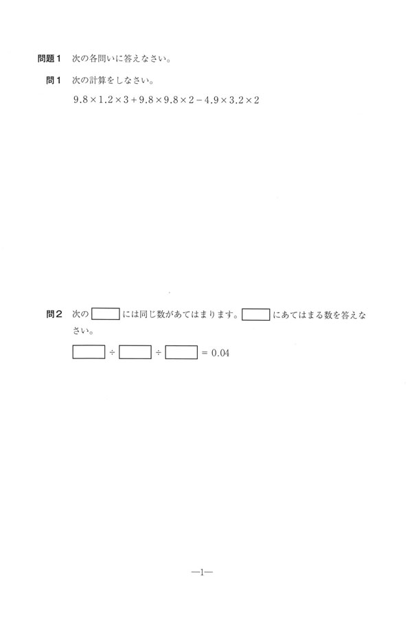2025年度入試過去問題(前期)(算数 問題)(1ページ目)|同志社女子中学校の入試過去問
