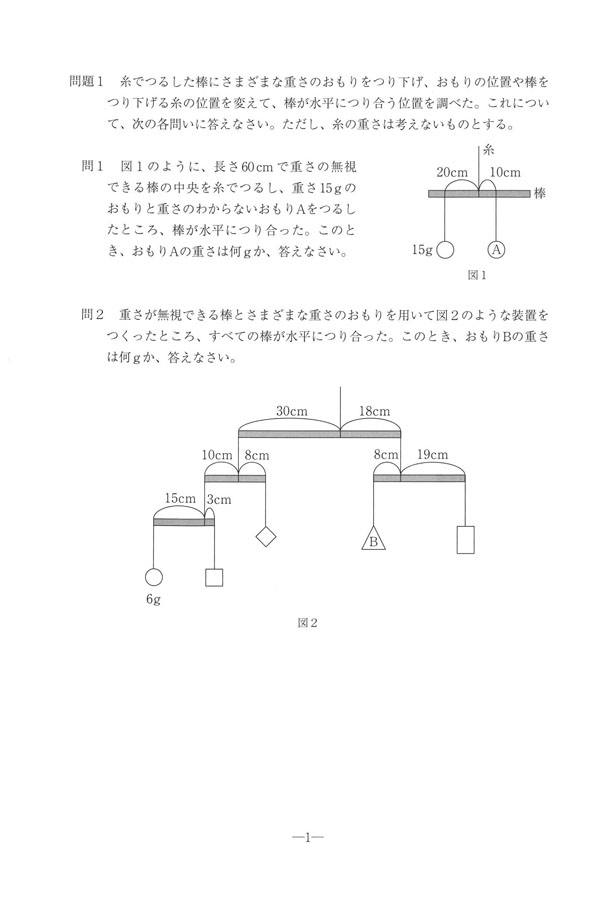 2025年度入試過去問題(後期)(理科 問題)(1ページ目)|同志社女子中学校の入試過去問
