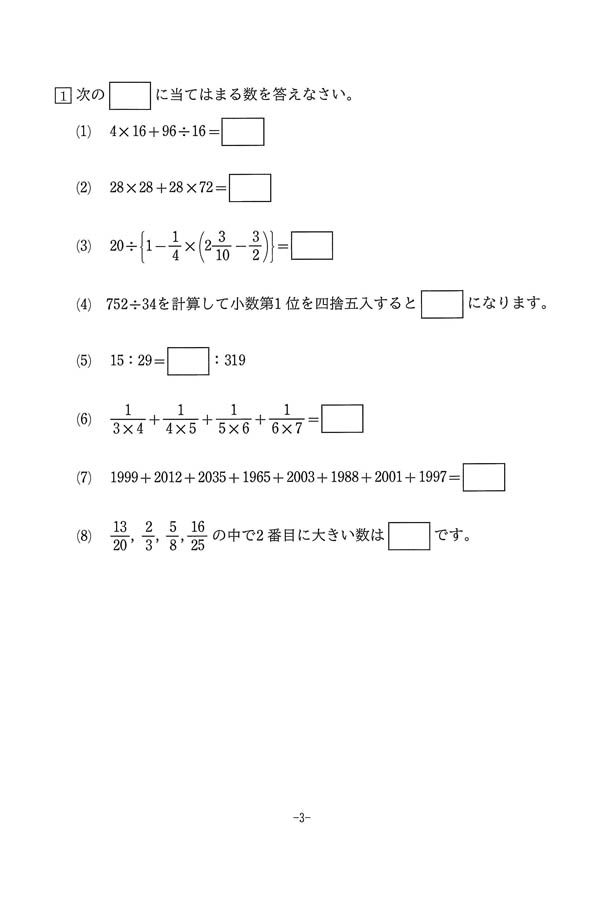 2024年度入試過去問題 B1日程(算数 問題)(1ページ目)|ノートルダム女学院中学校の入試過去問