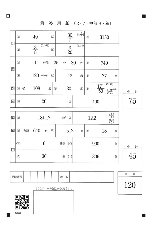 入試過去問(解答)(1ページ目)|東山中学校の入試過去問
