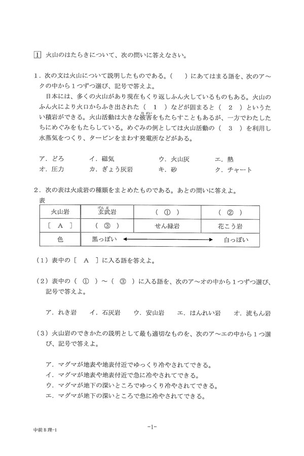 入試過去問(問題)(1ページ目)|東山中学校の入試過去問
