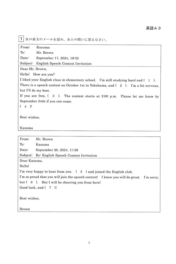 入試過去問(問題)(1ページ目)|大谷中学校の入試過去問