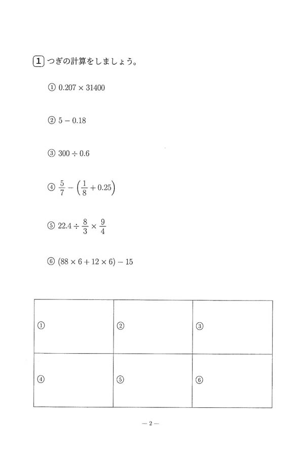 令和6年度入試過去問題(算数 問題)(1ページ目)|一燈園中学校の入試過去問