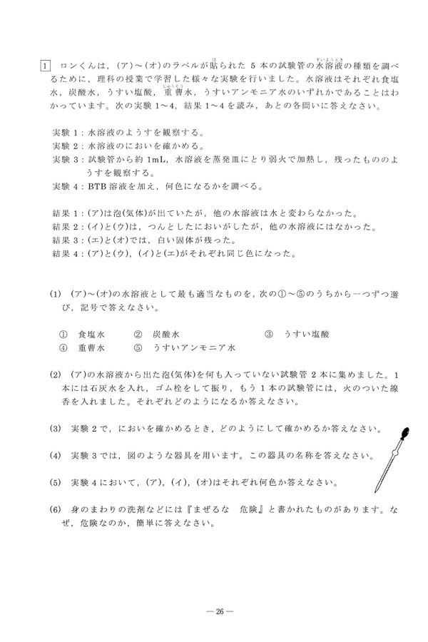 令和7年度入試過去問題(A1)(理科 問題)(1ページ目)|龍谷大学付属平安中学校の入試過去問