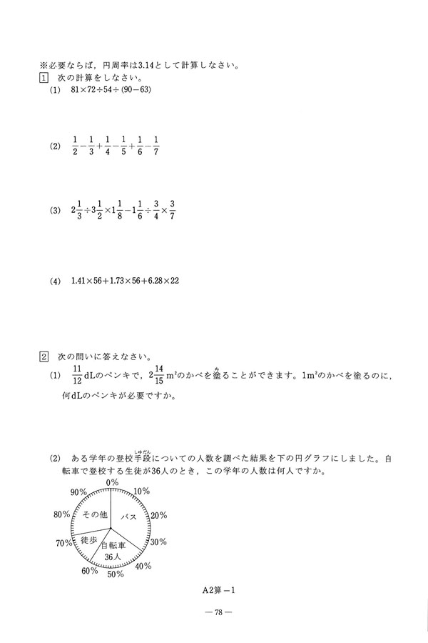 令和7年度入試過去問題(A2)(算数 問題)(1ページ目)|龍谷大学付属平安中学校の入試過去問