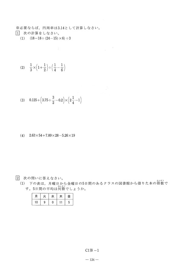 令和7年度入試過去問題(C1)(算数 問題)(1ページ目)|龍谷大学付属平安中学校の入試過去問