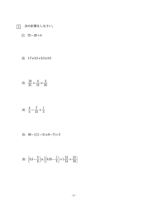 2024年度入試過去問題 B1日程(算数 問題)(1ページ目)|京都聖母学院中学校の入試過去問