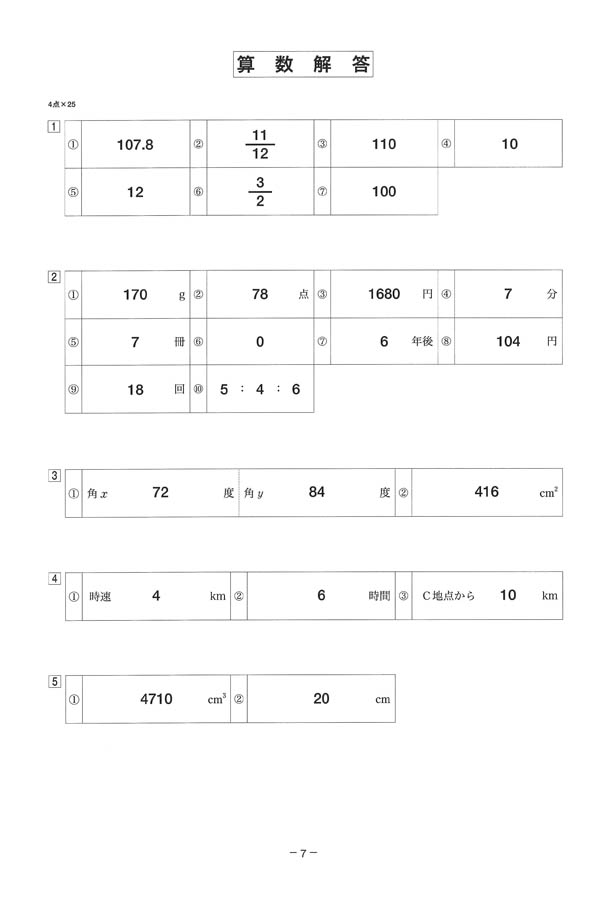 2024年度入試過去問題(算数 解答)(1ページ目)|相愛中学校の入試過去問