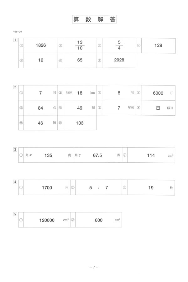 2025年度入試過去問題(算数 解答)(1ページ目)|相愛中学校の入試過去問