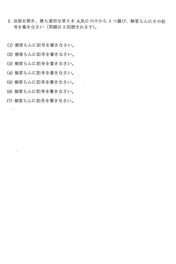 2024年度入試過去問題(A1日程)(英語 問題)(1ページ目)|賢明学院中学校の入試過去問