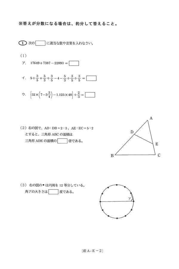 令和7年度入試過去問題(前期A・E入試)[1/6]