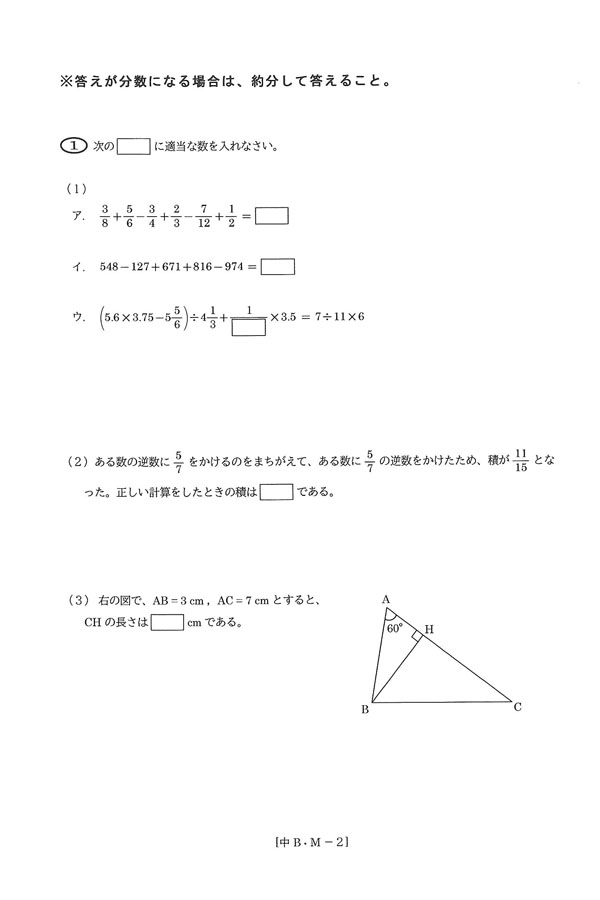 令和7年度入試過去問題(中期B・M入試)[1/6]