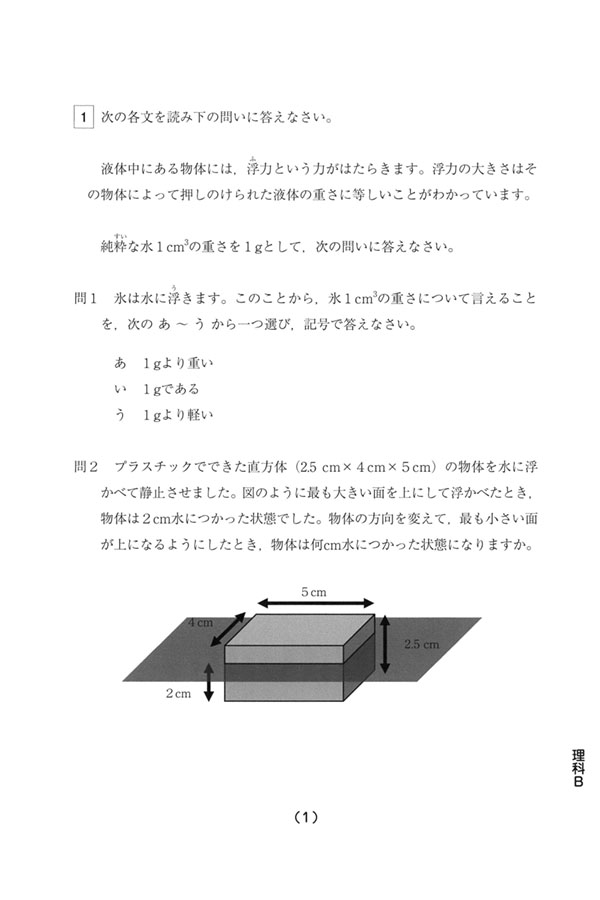 2021年度入試過去問題 B日程(理科 問題)(1ページ目)|高槻中学校の入試過去問