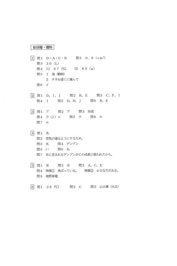 入試過去問(解答)(1ページ目)|高槻中学校の入試過去問