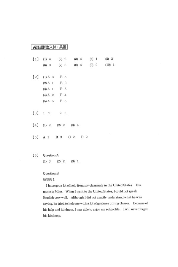 平成30年度入試過去問題 英語選択型(英語 解答)(1ページ目)|高槻中学校の入試過去問