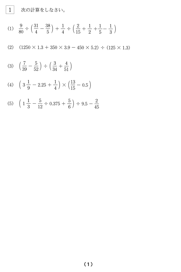 平成24年度入試過去問題 前期(算数 問題)(1ページ目)|高槻中学校の入試過去問
