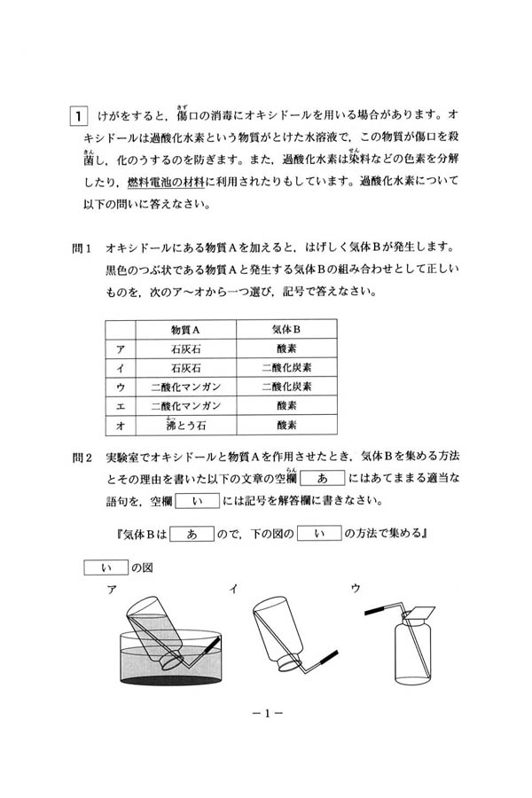 平成26年度入試過去問題 中期(理科 問題)(1ページ目)|高槻中学校の入試過去問